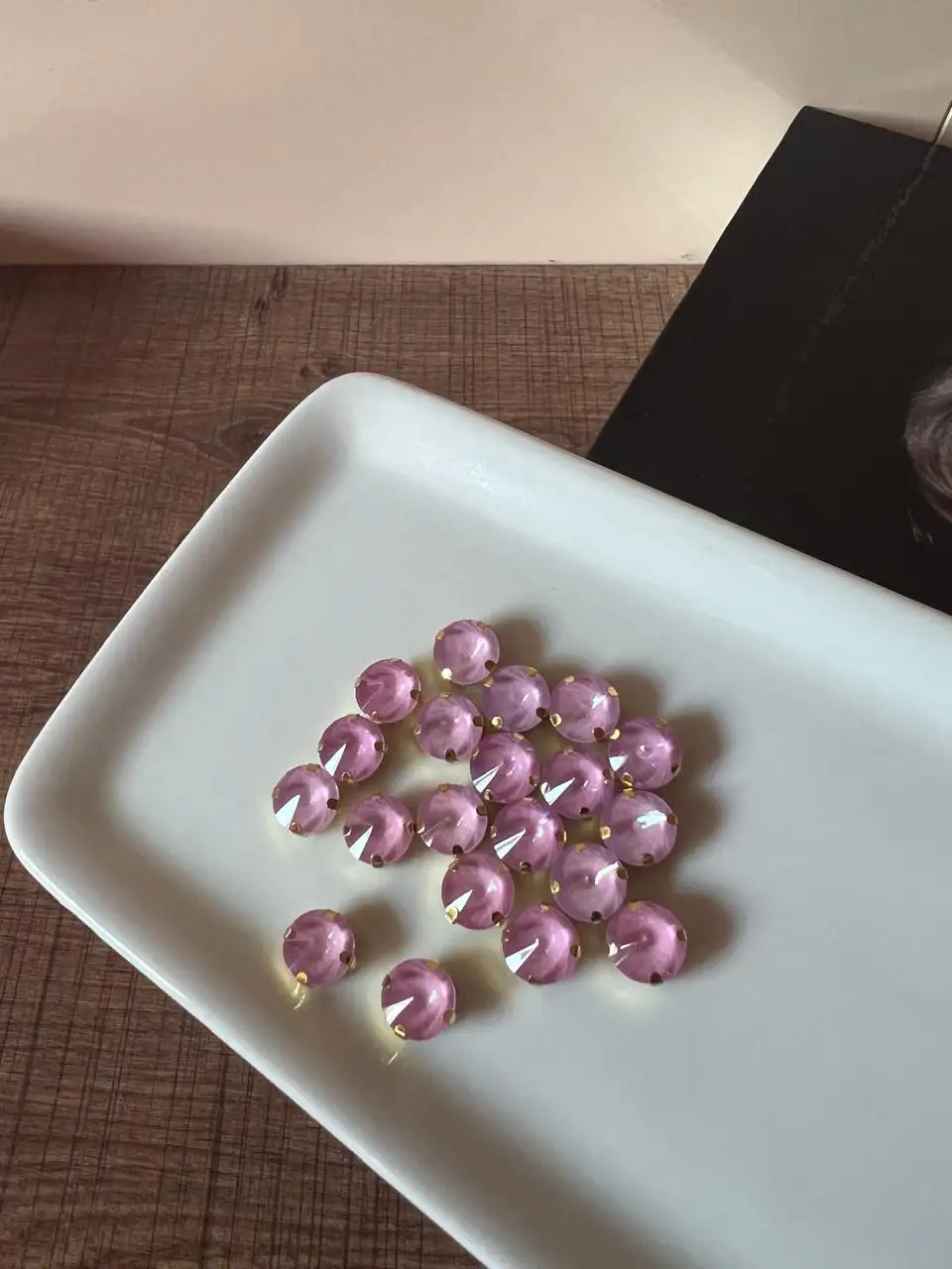 ستراس ٢ملم شذر شفاف بقاعدة وردي