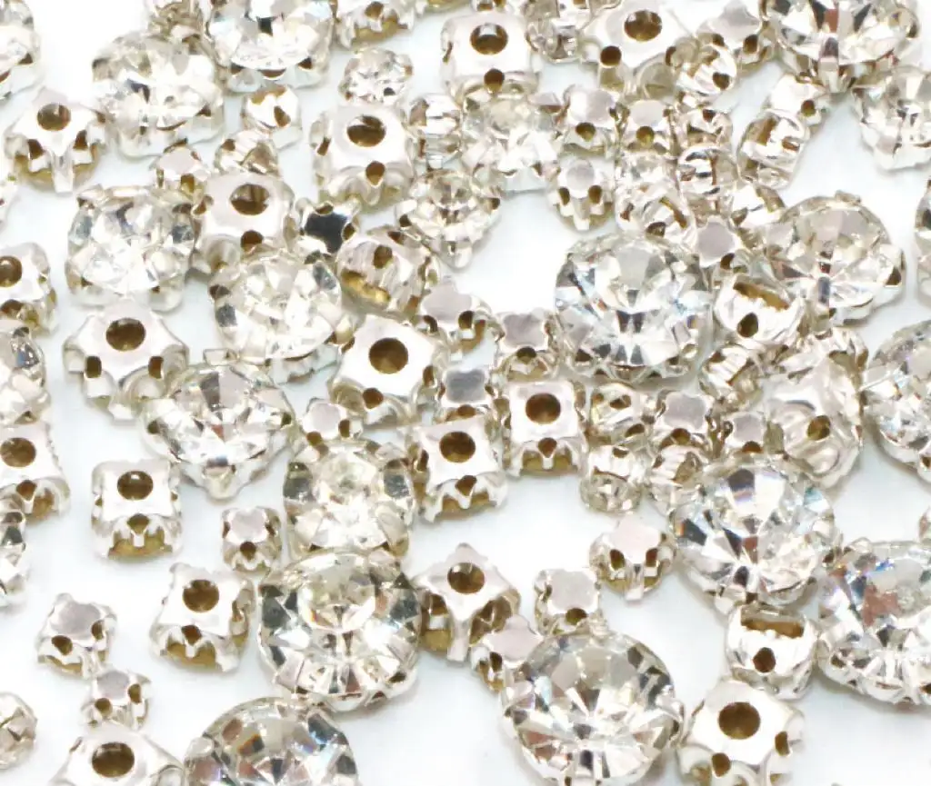 ستراس ٢ملم شذر شفاف قاعدة فضي
