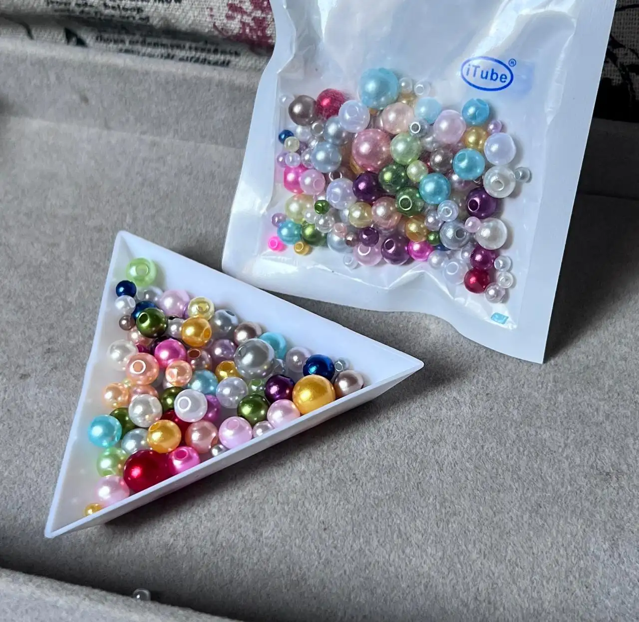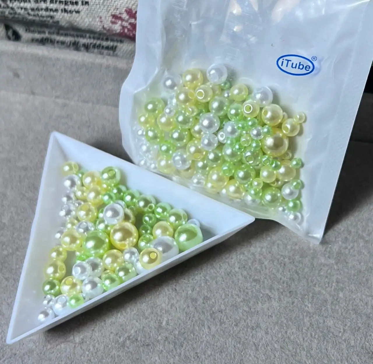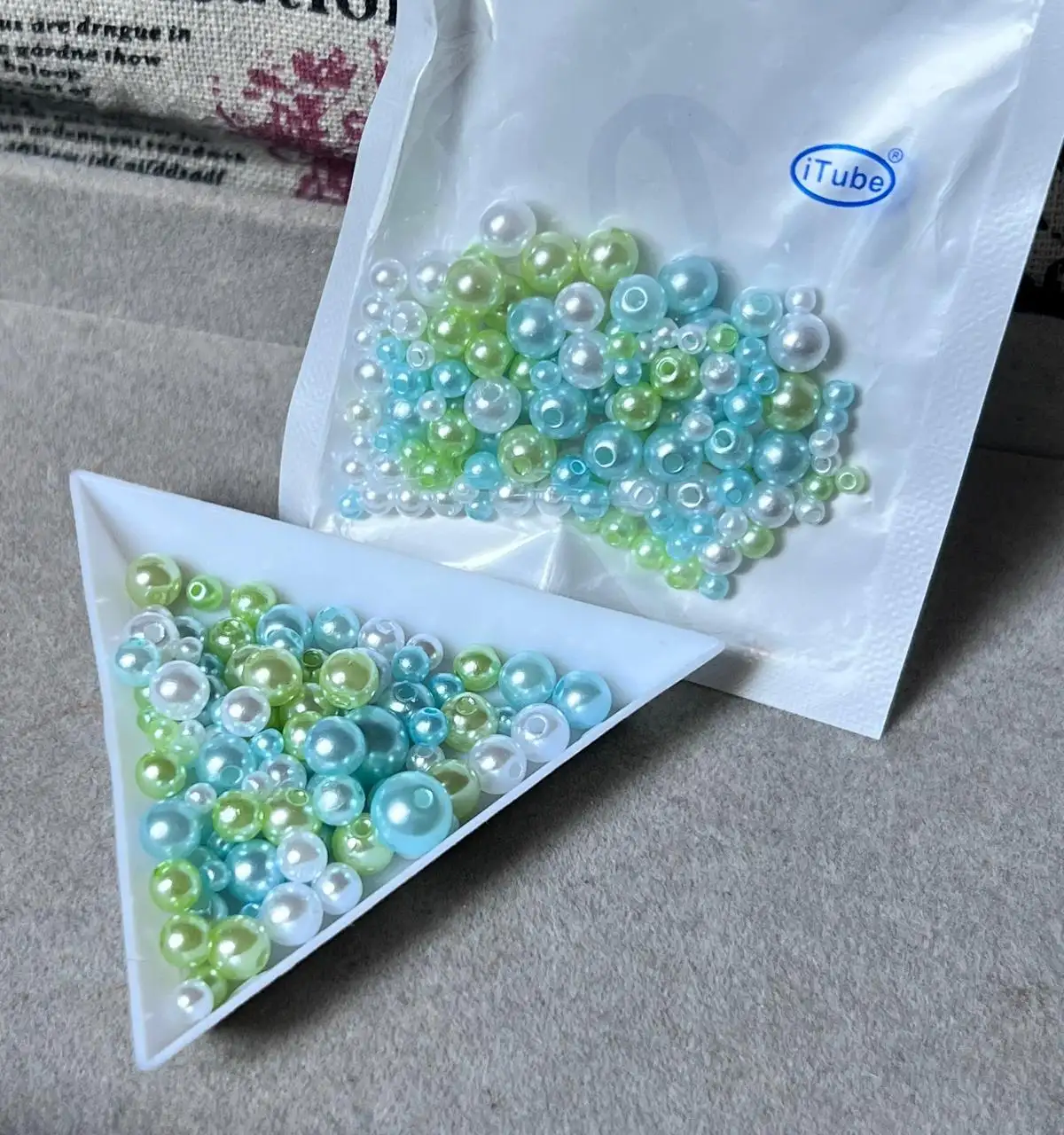 لؤلؤ متعدد الالوان وزن الكيس ١٠غم يحتوي مايقارب ٢٠٠ قطعة متنوع القياس من ٣/٤/٥/٦/٨ حجم الكيس صغير يفيد اهل البروشات ملاحظة الالوان ممكن تختلف بالحقيقة بنسب بسيطة بسبب عوامل الاضاءة هذا اللون بنفسجي فاتح اصفر فاتح وردي فاتح سمائي فاتح وابيض