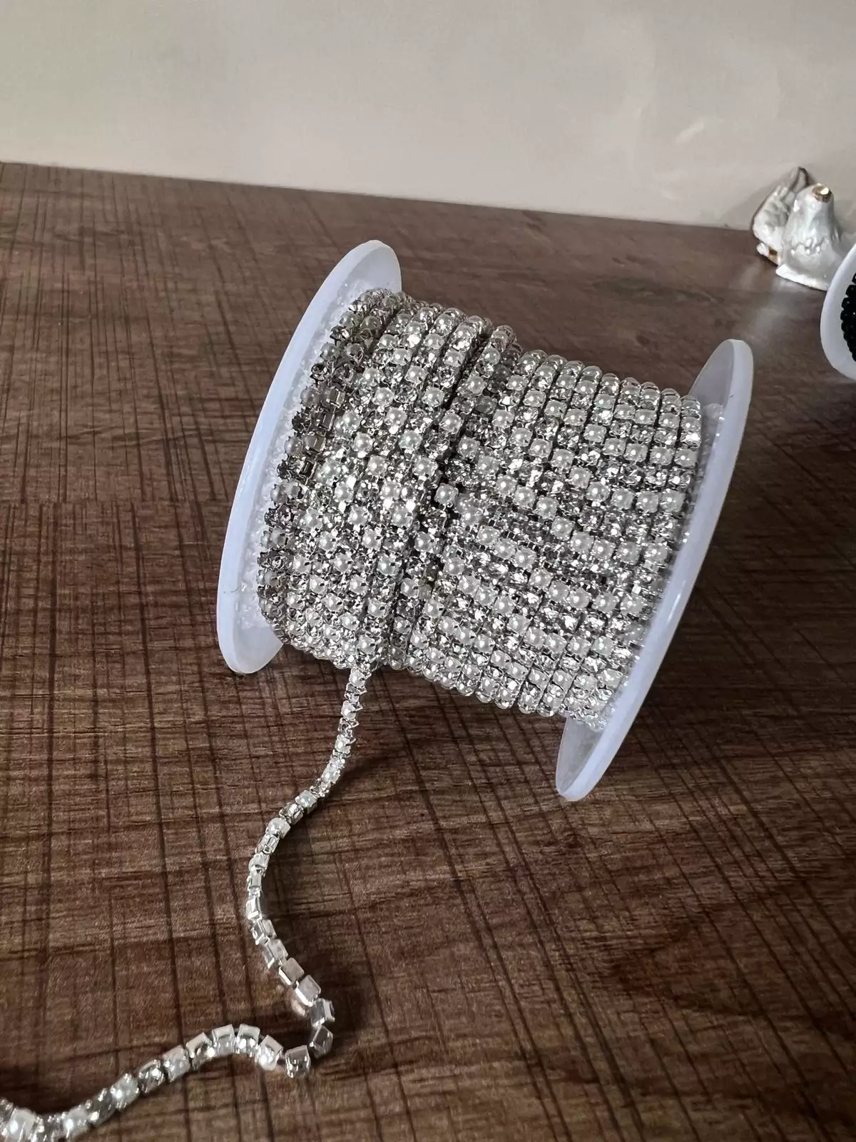 ستراس ٢ملم ليلو ابيض بقاعدة فضي