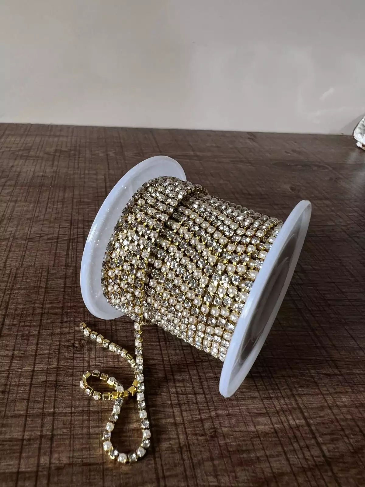 ستراس ٢ملم شذر شفاف وليلو ابيض قاعدة ذهبي