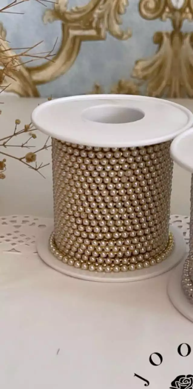ستراس ٢ملم ليلو ابيض بقاعدة ذهبي
