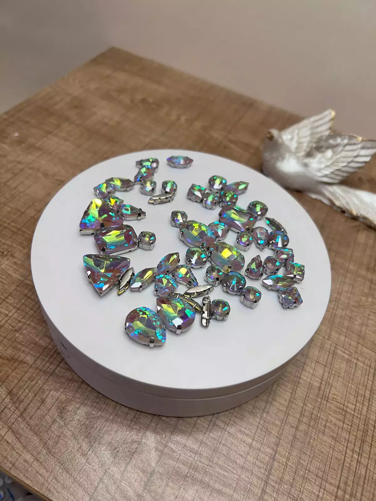 كرستال مجموعة ابيض رقم ١ قاعدة فضي