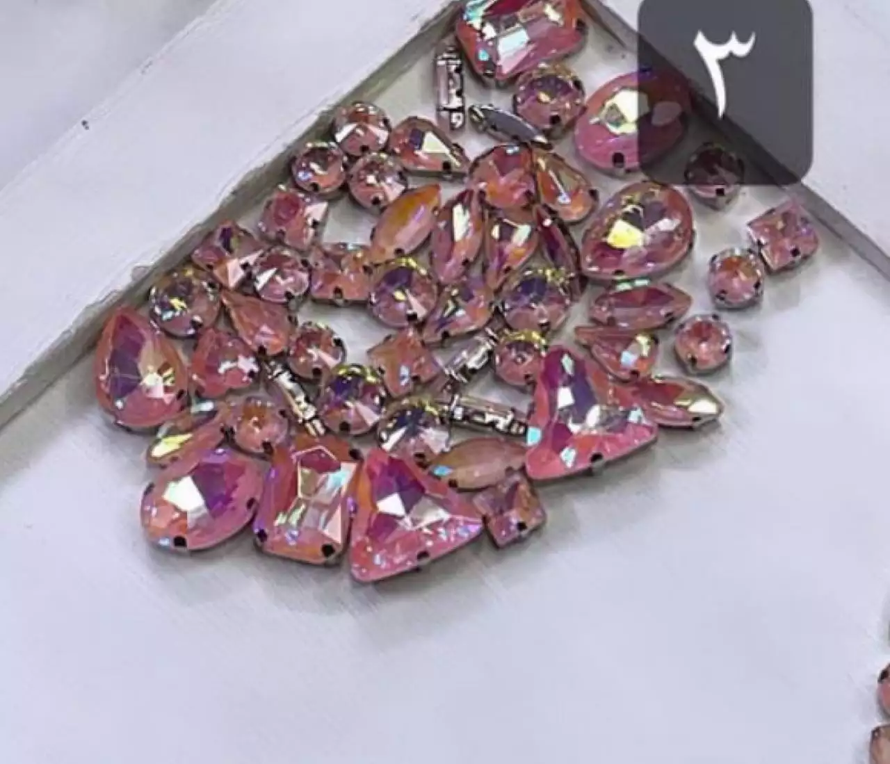 ستراس ٢ملم شذر شفاف بقاعدة وردي